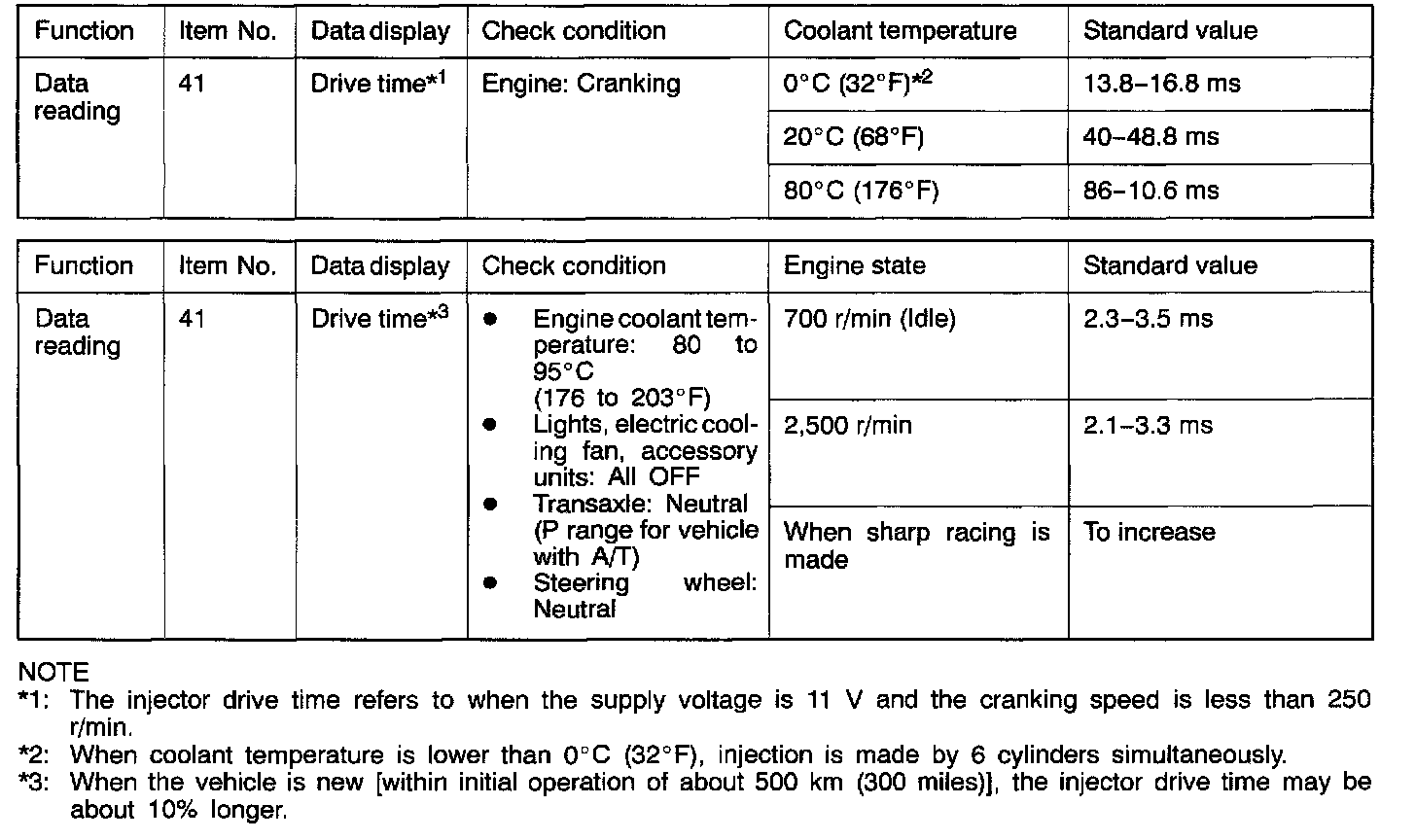 If the injector harness and individual part checked good but the injector drive time is out of specification, the following troubles are suspected.