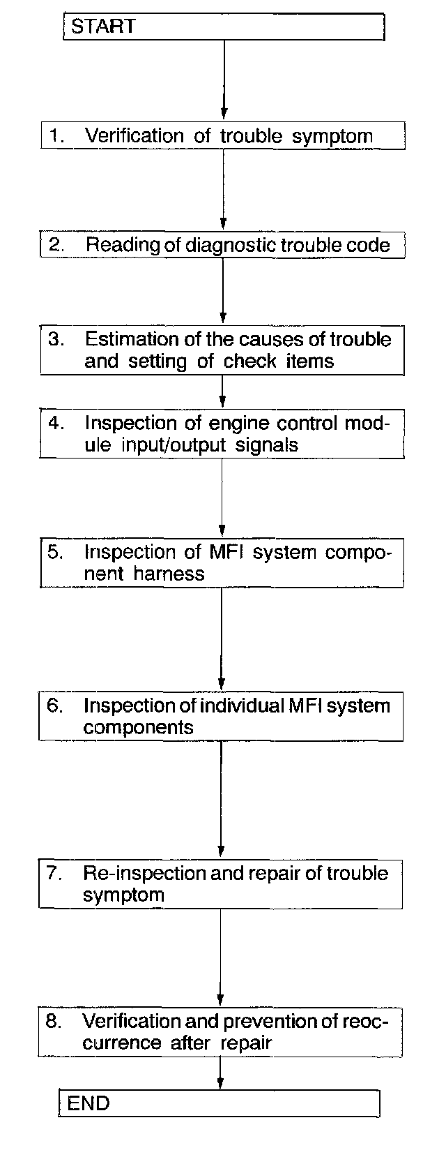 Effective troubleshooting procedures for MFI system problems are given below.