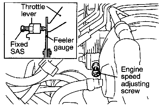 2. Insert a 0.65 mm (0.025 in.) thick feeler gauge between the fixed SAS and throttle lever.