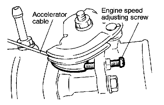 2. Check to ensure that the throttle lever is in contact with the engine speed adjusting screw.