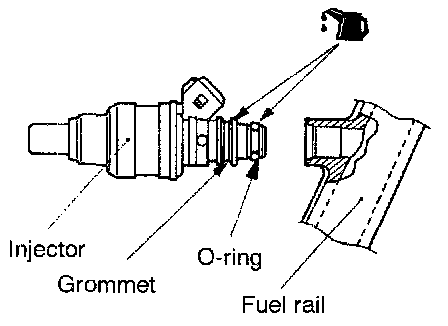 3. Check to be sure that the injector turns smoothly. If it does not turn smoothly, the O-ring may be trapped, remove the injector and then reinsert it into the fuel rail and check again.