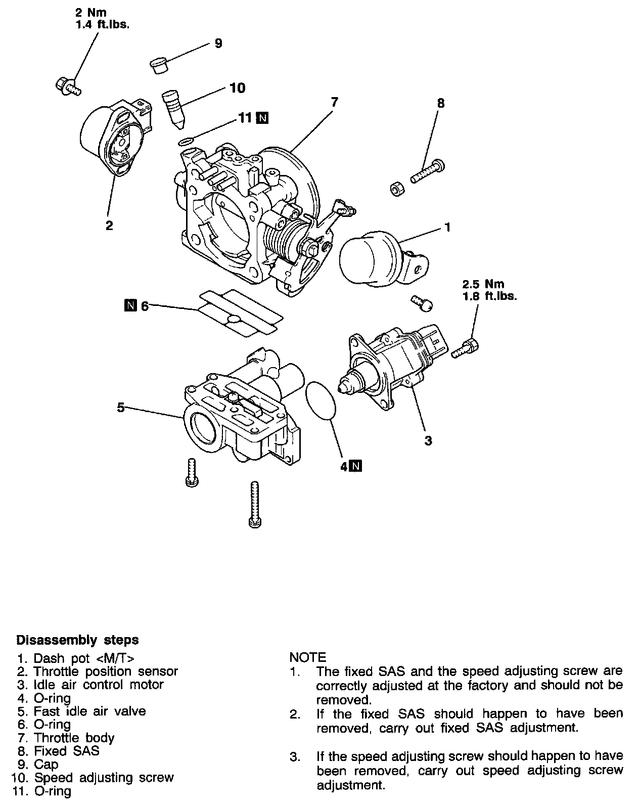 1. The fixed SAS and the speed adjusting screw are correctly adjusted at the factory and should not be removed.