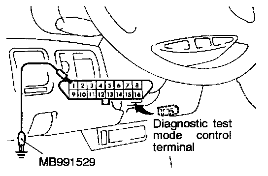 NOTE: The connection of the scan tool grounds the diagnostic test mode control terminal.