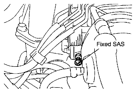 4. Tighten the fixed SAS slowly to find a point at which it contacts the throttle lever (where the throttle valve starts opening). From that point, tighten the fixed SAS further 1(1/4) turns.