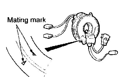 CAUTION: If the clock spring's mating marks are not properly aligned, the steering wheel may not rotate completely during a turn, or the flat cable within the clock spring may be severed, obstructing normal operation of the SRS and possibly leading to serious injury to the vehicle's driver.