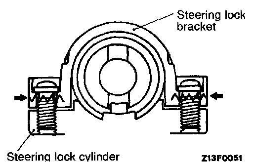 CAUTION: The steering lock bracket and bolts must be replaced with new ones when the steering lock cylinder is installed.