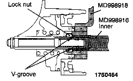5. Loosen the lock nut to before the V-groove of the adjusting rod, and tighten the special tool (inner) until it contacts the lock nut.