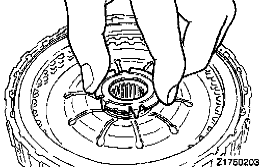 78. Coat the oil pump drive hub with automatic transmission fluid and install the torque converter. Push in firmly so that dimension A in the diagram is the standard value.