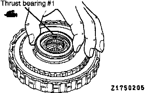46. Adhere thrust bearing #1 to the end of the clutch hub with petrolatum jelly.