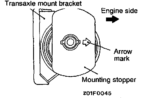 Attach the transaxle mounting bracket so that the arrow mark on the mounting stopper is in the direction as shown in the illustration