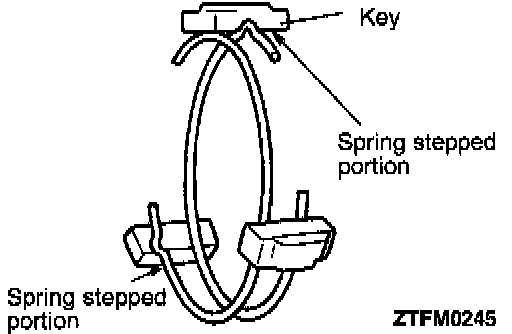 1. When installing the synchronizer springs, be sure to position each spring with respect to the keys as illustrated.