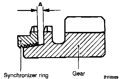3. Force the synchronizer ring toward the clutch gear and check clearance "A". Replace if it is out of specification.