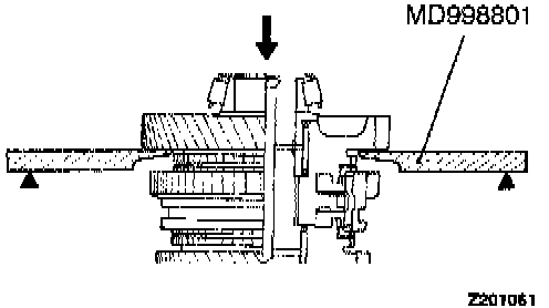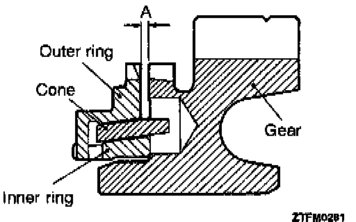 3. Install the outer ring, inner ring and cone, and press them onto the clutch gear. Check clearance "A", and replace if "A" is below the limit value.