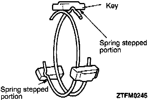 1. When installing the synchronizer springs, be sure to position each spring with respect to the keys as illustrated.