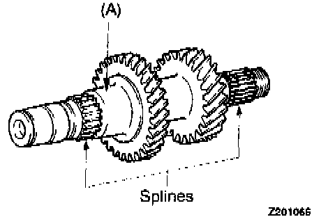 1. Check the outer surface of the intermediate gear where the needle bearing is mounted for damage, abnormal wear and seizure [portion (A)].