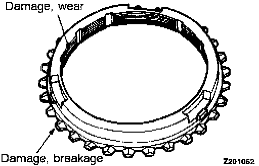 2. Check the synchronizer cone for rough surface, damage and wear.