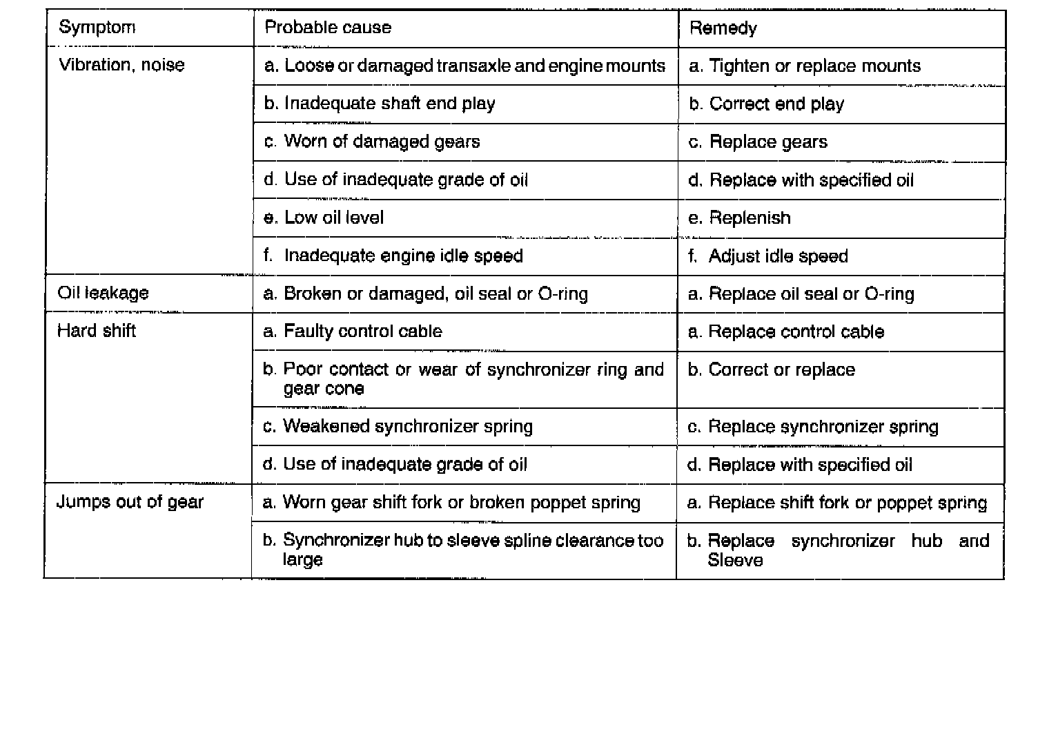 Manual Transmission/Transaxle: Testing and Inspection