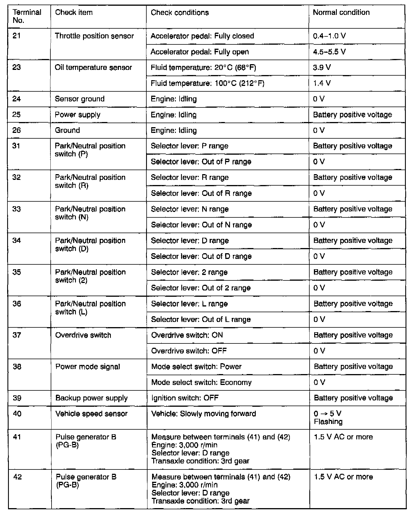 Pinout Values and Diagnostic Parameters