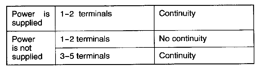 Connect battery power source to terminal 5. Check circuit between terminals with terminal 3 grounded.