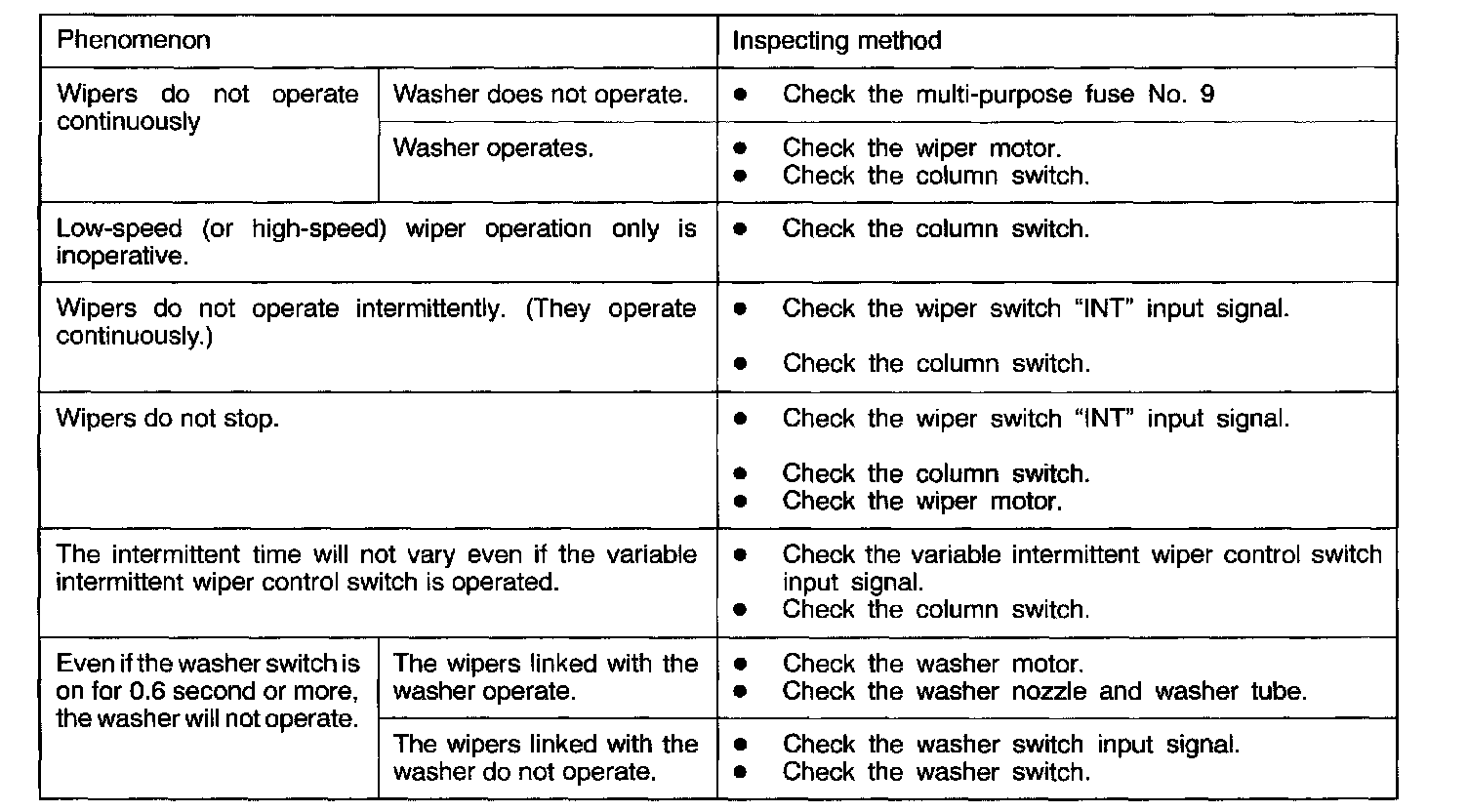 1. Wipers do not operate.