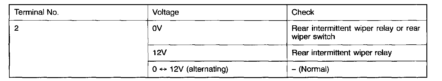 - Check terminal voltage of the rear intermittent wiper relay energized.