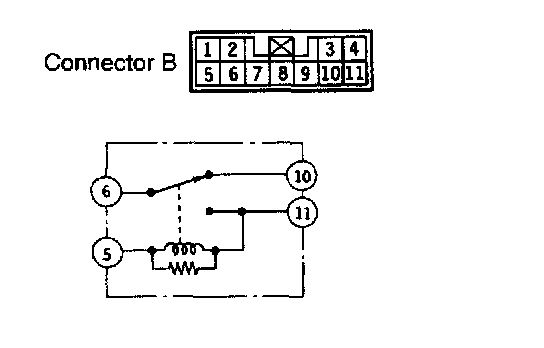 1. Check to ensure that there is continuity between terminals (5) and (11) and between the terminals (6) and (10), and that there is no continuity between terminals (5) and (11).