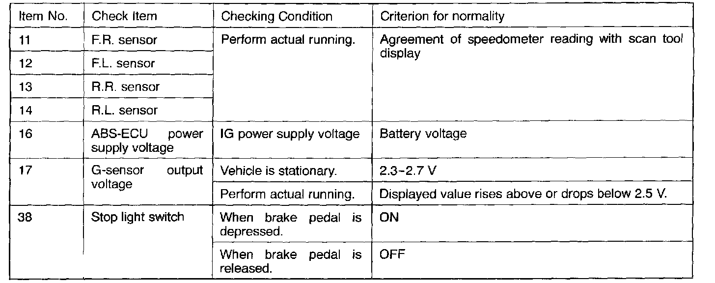 Of all ECU input data, the items shown in the provided chart can be read by the scan tool.