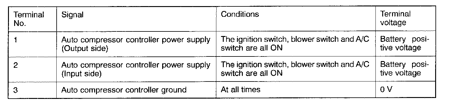 AIR CONDITIONING CONTROL UNIT INSPECTIONDisconnect the amplifier and inspect the connector on the wire harness side as shown in the chart below.