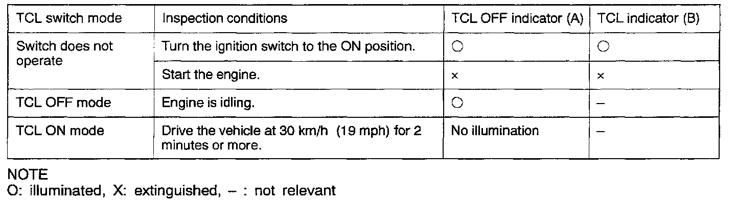 Press the TCL switch and check if each TCL indicator lamp illuminates or switches off.