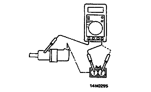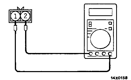 1. Remove all connections from the speed sensor, and then measure the resistance between terminals (1) and (2) and the body of the speed sensor.