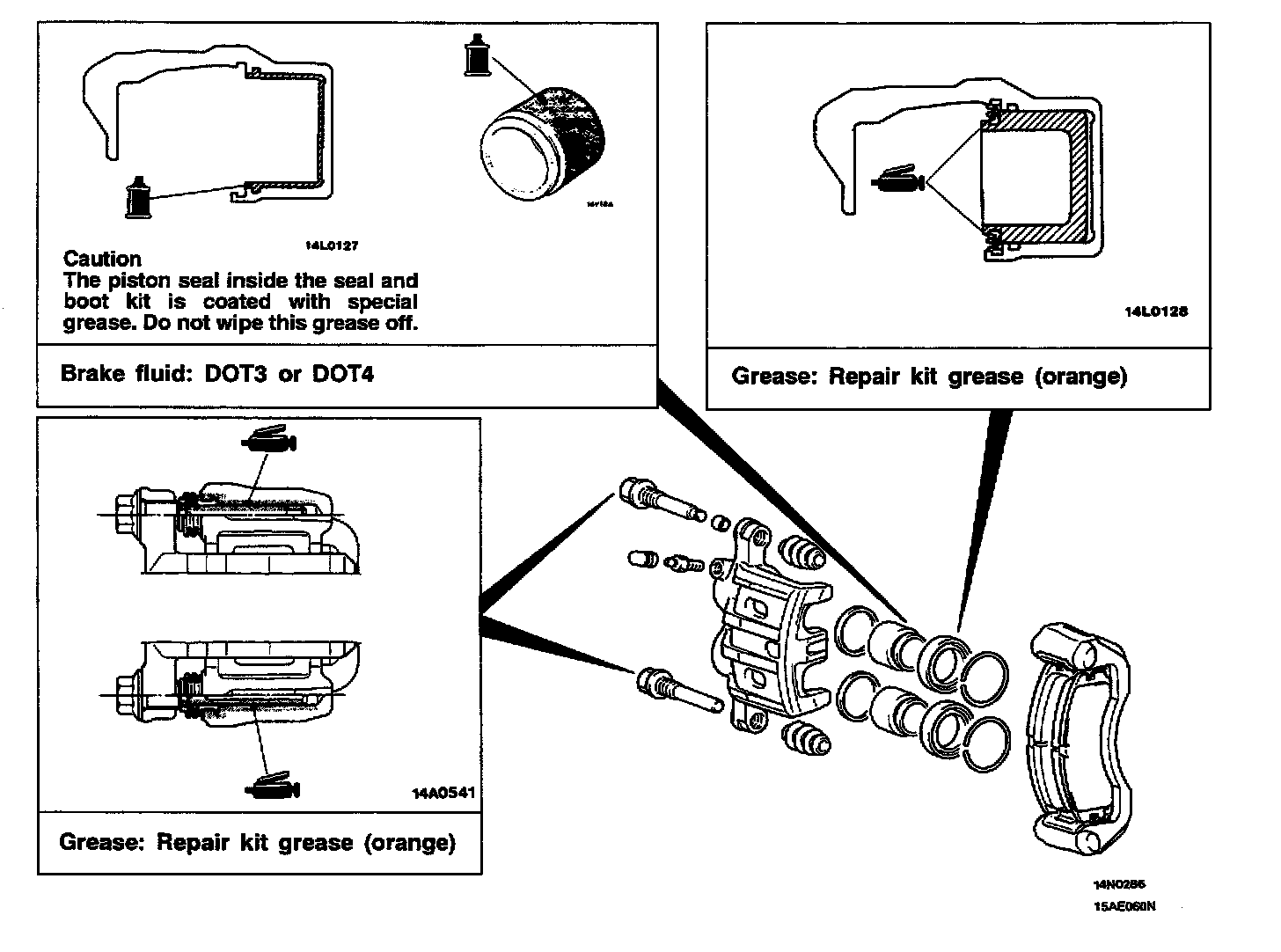 2. Clean piston surface and inner cylinder with trichloro-ethylene, alcohol, or specified brake fluid.
