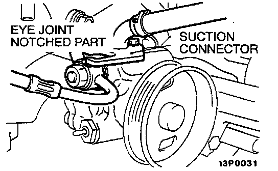 Secure the notched part of the pressure hose eye joint at the position where it contacts the oil pump suction connector.