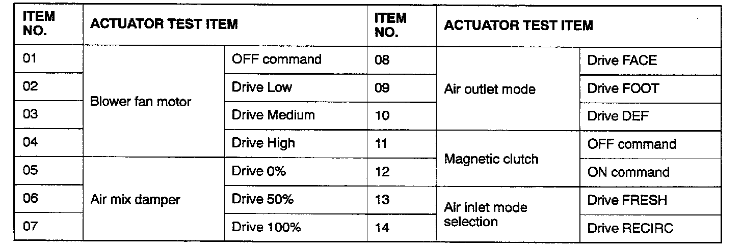 Actuator Test Reference Table