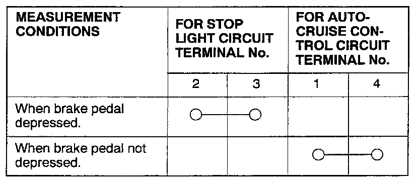 The stop light switch is in good condition if there is no continuity when the plunger is pushed in to a depth of within 4 mm (0.16 inch) from the outer case edge surface, and if there is continuity when it is released.
