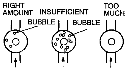 1. If bubbles are visible occasionally in the sight glass and disappear when engine speed is raised, the magnetic clutch is engaged, the compressor discharge line is warm and the compressor inlet line is cool; the system may be overcharged.