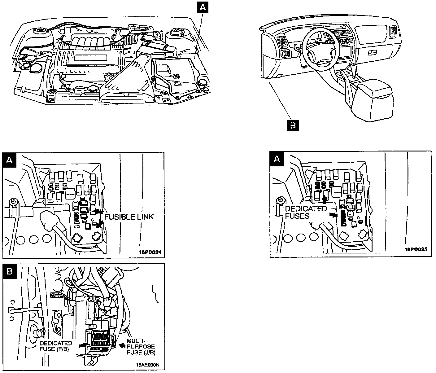 Fusible Link And Fuse Location Overall View And Views A-B: