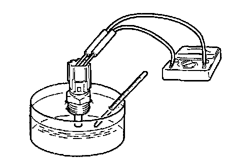 2. With temperature sensing portion of engine coolant temperature sensor immersed in hot water, check resistance.