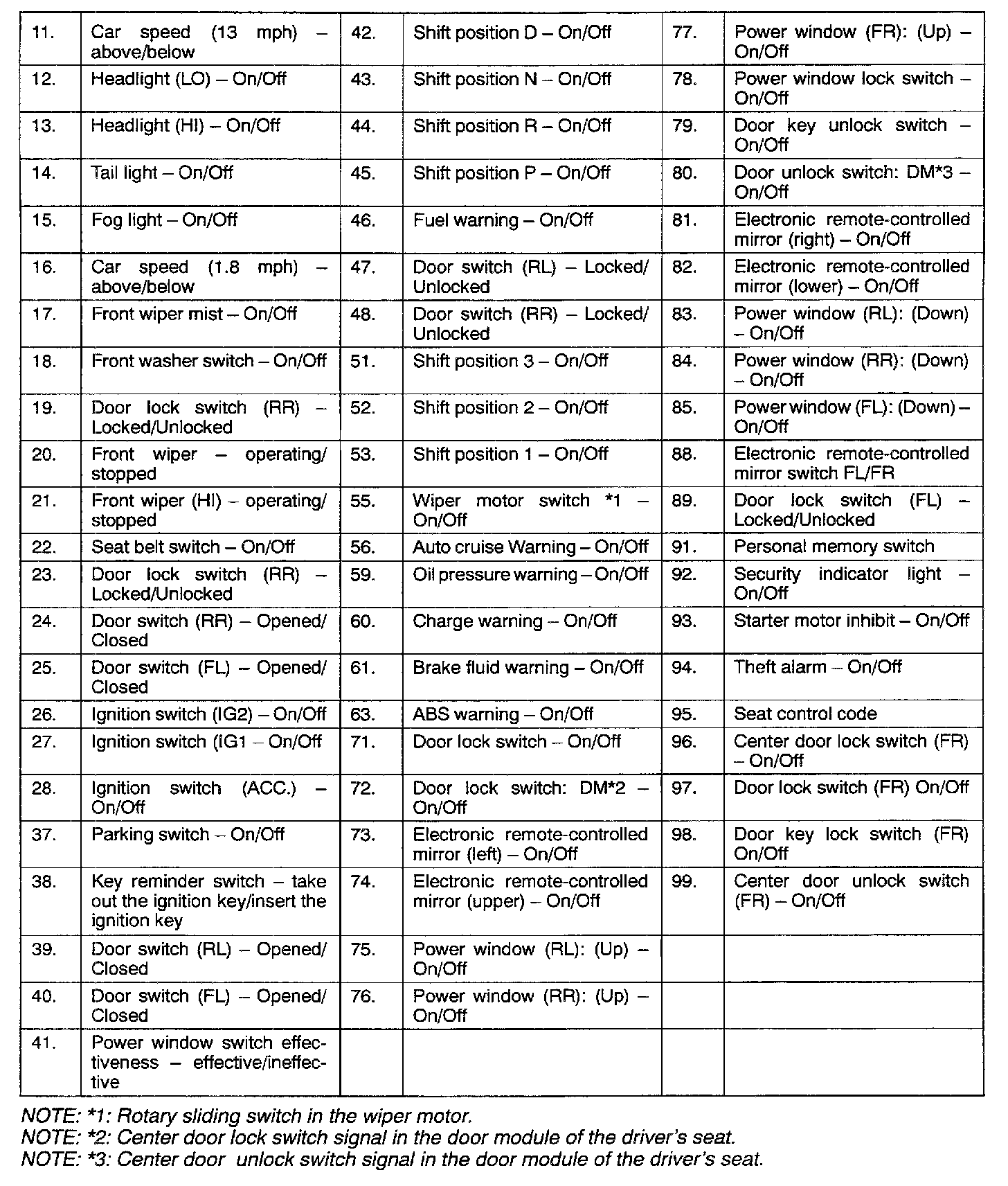 Service Data Reference Chart