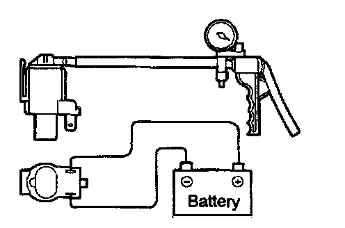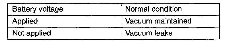 4. Check air-tightness by applying a vacuum with voltage applied directly from the battery to the solenoid valve and without applying voltage.