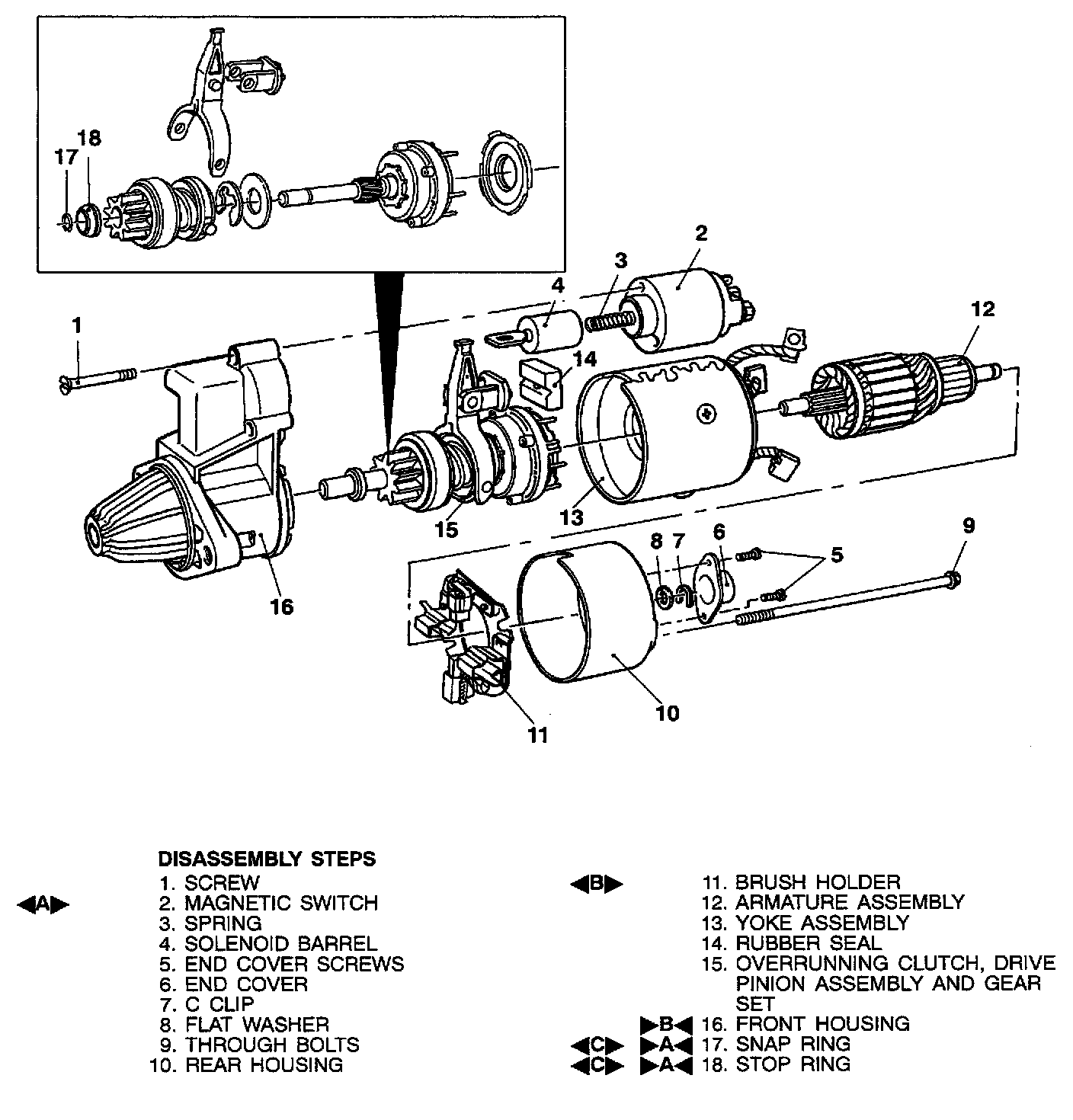 1. Do not immerse parts in cleaning solvent. Immersing the yoke and field coil assembly and/or armature will damage insulation. Wipe these parts with a cloth only.
