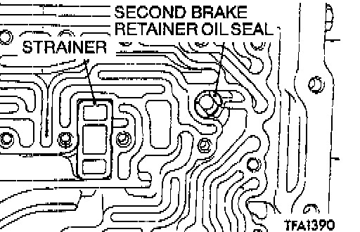 17. Remove the strainer and the second brake retainer oil seal.
