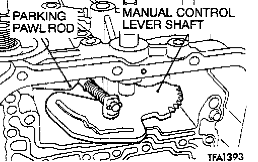 20. Remove the manual control lever shaft and the parking pawl rod.