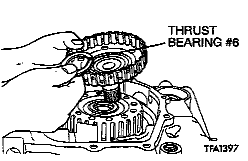 39. Remove the overdrive clutch hub and the thrust bearing #6.