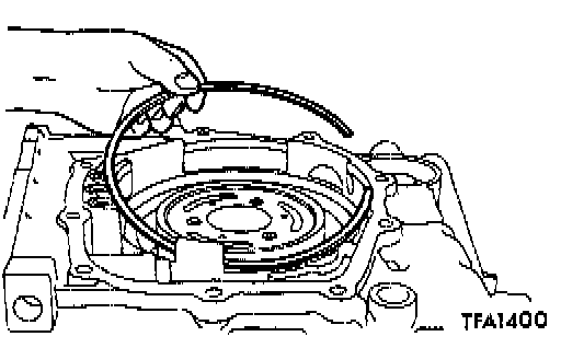 57. Remove the one-way clutch inner race and O-ring, spring retainer, return spring and the low-reverse brake piston.