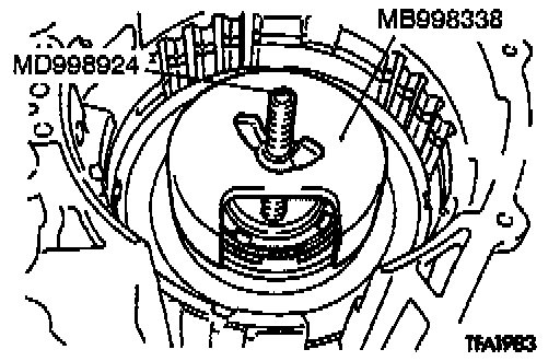 26. Install the special tool (MD998333) in the hole A.