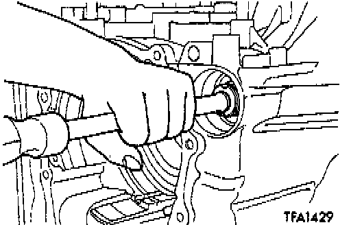 64. Tap on the rear of the output shaft to remove the output shaft, taper roller bearing and the collar.