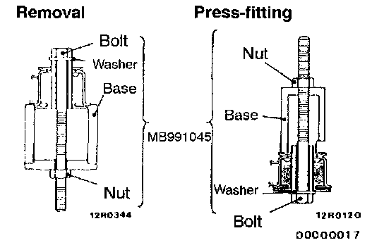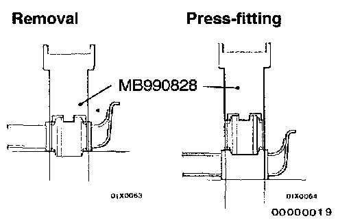 1. Use the special tool to drive out and press-fit the crossmember bushing C.