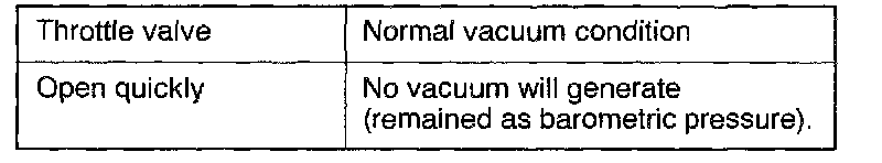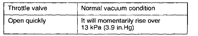 2. Regarding the engine in cold and hot conditions, check the condition of vacuum when a engine rpm is increase by opening the throttle valve quickly.