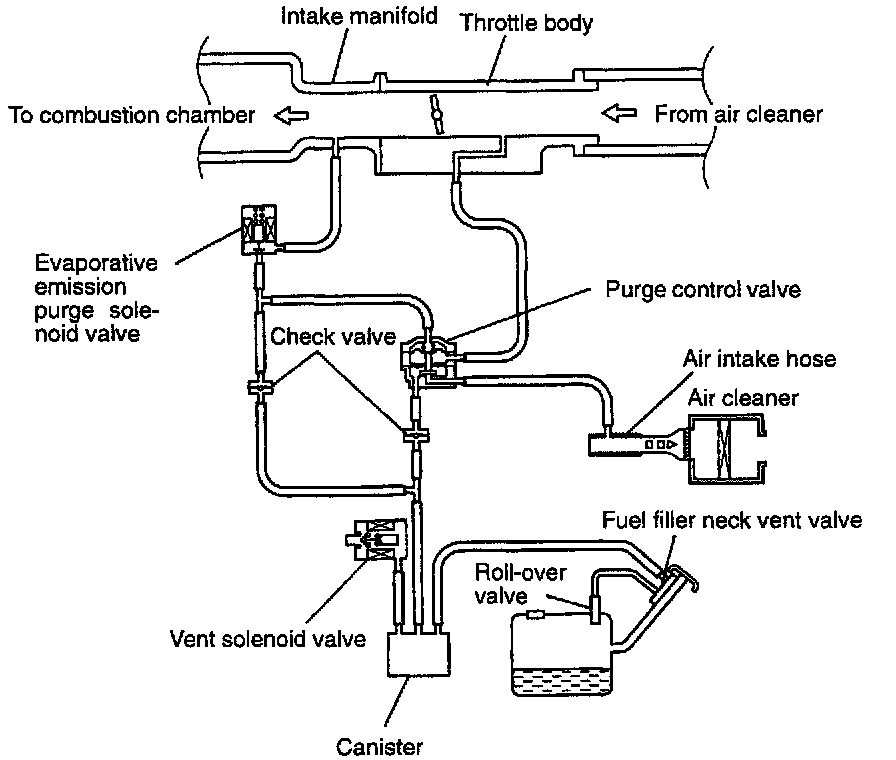 - The pressure rise when the evaporative emission purge solenoid and evaporative emission ventilation solenoid are closed is less than 490 Pa (0.071 psi).
