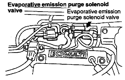 1. Disconnect the purge solenoid-to-air intake plenum hose at the purge solenoid side.